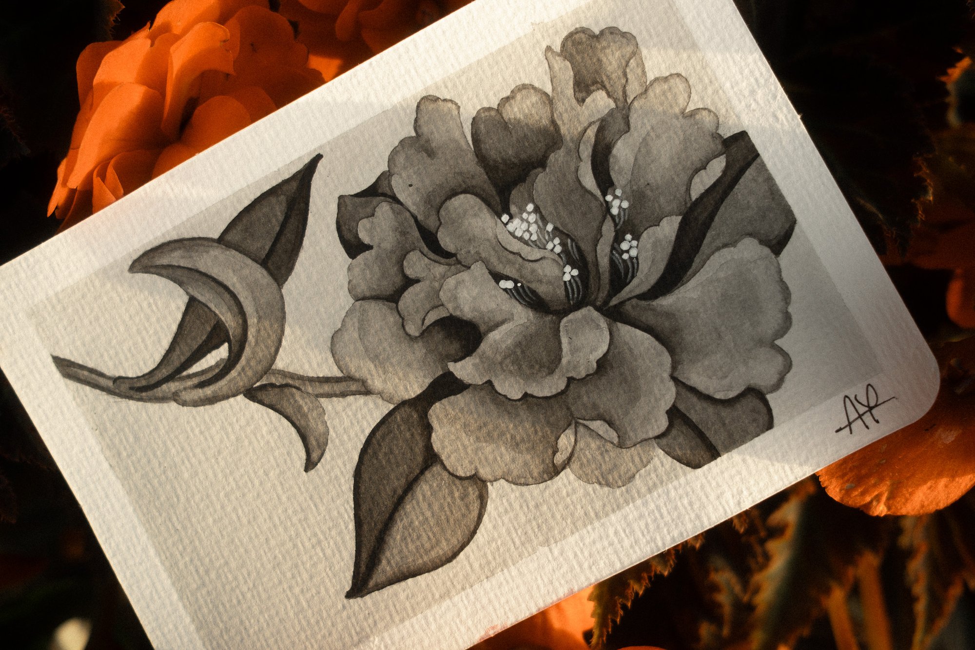 Original, tinta china y agua en papel de acuarela. Postal tamaño A6.