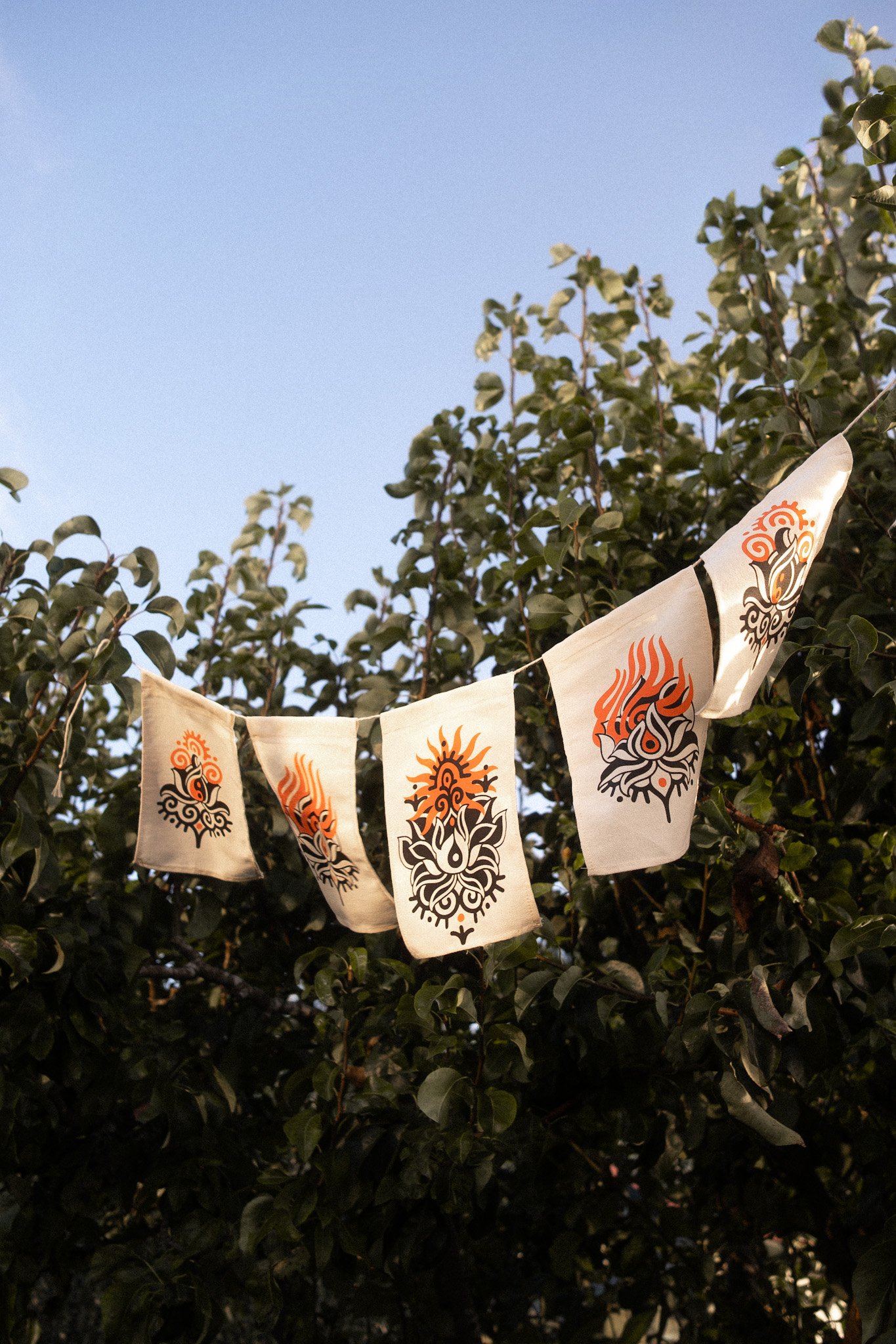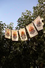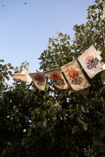 Banderines, tamaño A5, serigrafía a dos tintas: naranja y negro. Un loto naciendo y muriendo cosido a mano (con mucho amor). /Sobre la apertura y el cierre, el movimiento, los ciclos, la vida./